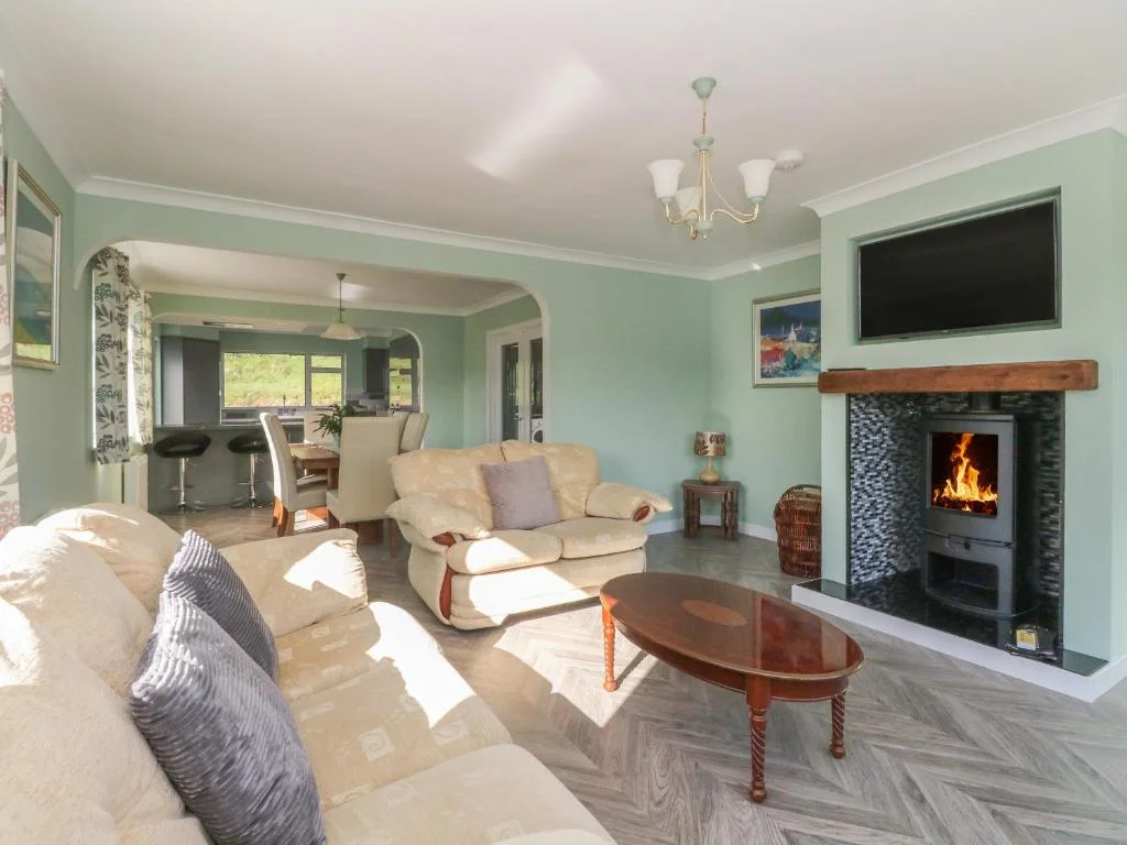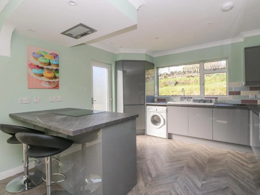 Modern Amenities: The holiday home includes a walk-in shower, refrigerator, microwave, dishwasher, and a TV. Additional facilities include a dining area and a wardrobe.